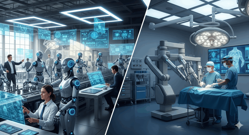 | Healthcare | Surgical assistance, rehabilitation, pharmacy automation, patient monitoring | Greater surgical accuracy, improved patient outcomes, operational efficiency |